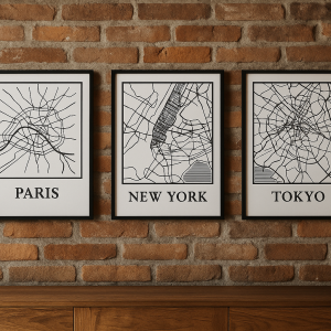 Chaque affiche met en lumière les lignes urbaines d’une grande ville, dans un style minimaliste noir et blanc intemporel. De Paris à Tokyo,