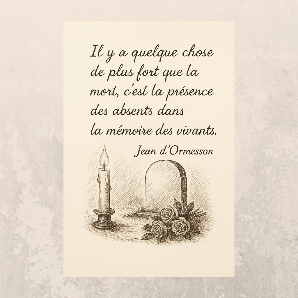 Les citations choisies évoquent chacune à leur façon, le deuil et le souvenir.