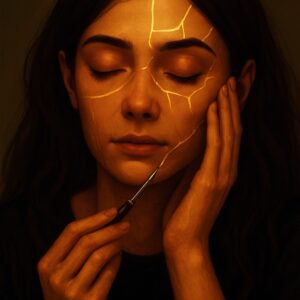leurs fissures d’or. Ici, les cicatrices deviennent des chemins lumineux, visibles et