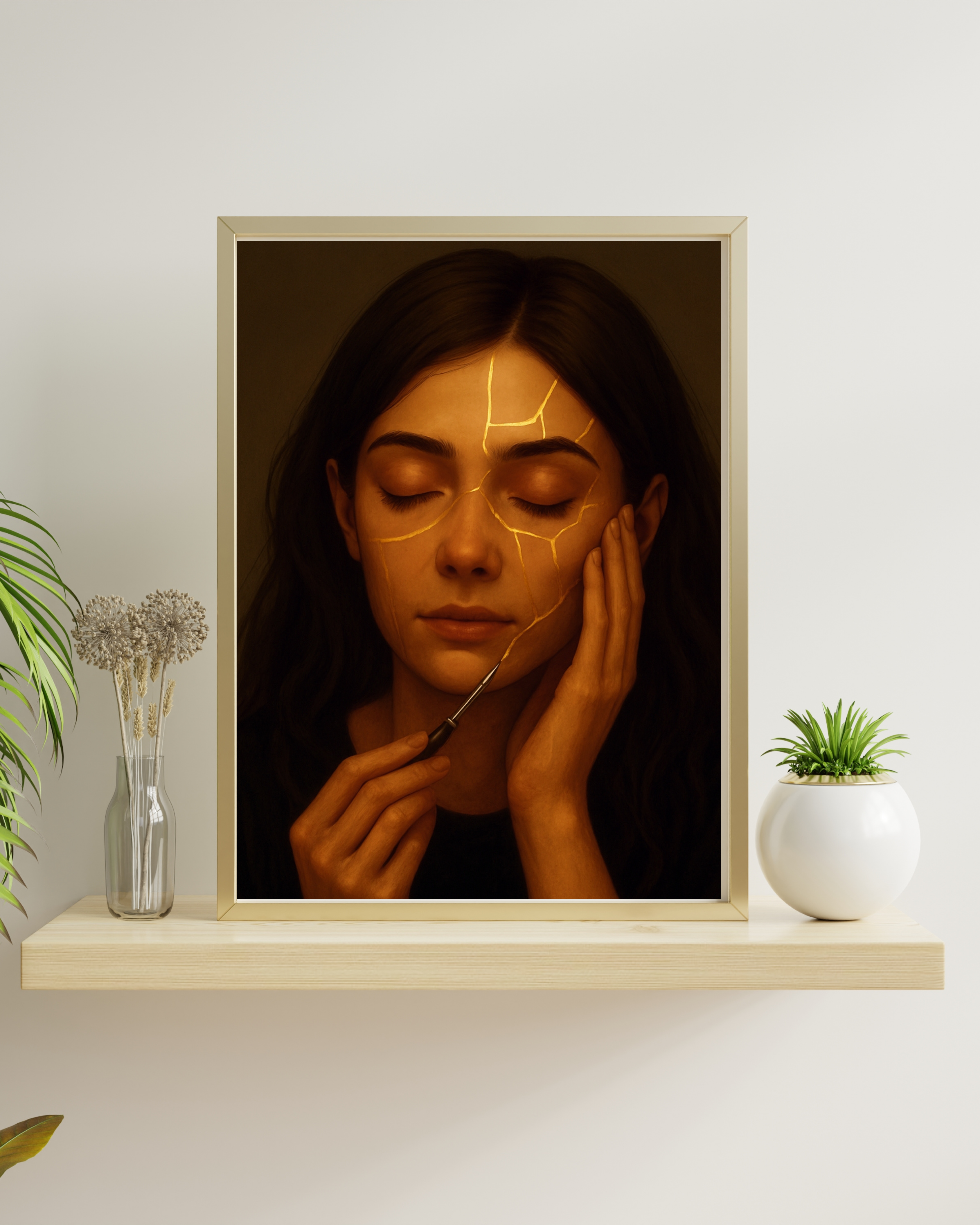 Parce qu’un cadre peut transformer une œuvre, nous avons choisi de vous laisser la liberté du vôtre. Minimaliste ou baroque, avec ou sans marge, Kintsu s’accorde à toutes les ambiances.