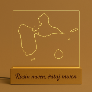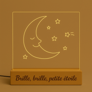 Cette veilleuse LED personnalisée associe un socle en bois naturel équipé de LED à une plaque en